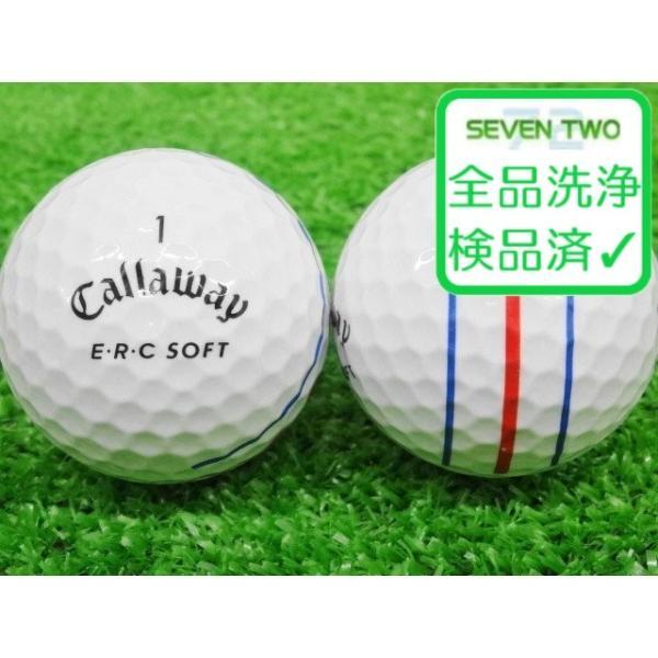 キャロウェイのクロームソフトは、トッププロから初心者まで多くのゴルファーに人気のゴルフボールです。ボール表面にはトリプルトラックといわれる中央に赤線・両端に青線の3本線がペイントされていることから、ターゲットラインにセットするだけで方向性に迷いは生じません。ロストボールのなかには、油性ペンで自家製ラインを書き込んでいるものもありますが、トリプルトラックについては方向指示的なペイントを必要としていないので、スッキリしたボールが多いのが特徴といえます。